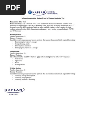 Kaplan School Of Nursing Admission Test Information Qualifications Tests