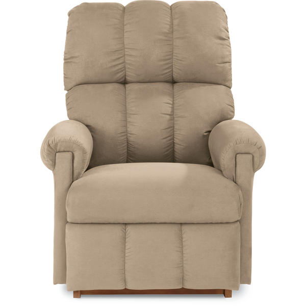 La z boy aspen driftwood powerreclinexr recliner is engineered for the most comfortable sitting experience built with legendary la z boy quality construction and materials fiber filled back cushions provide support and comfort in both upright and reclined positions contoured padded arms padded legrest for extra comfort easy to operate buttons on the side of the chair operate the recliner.