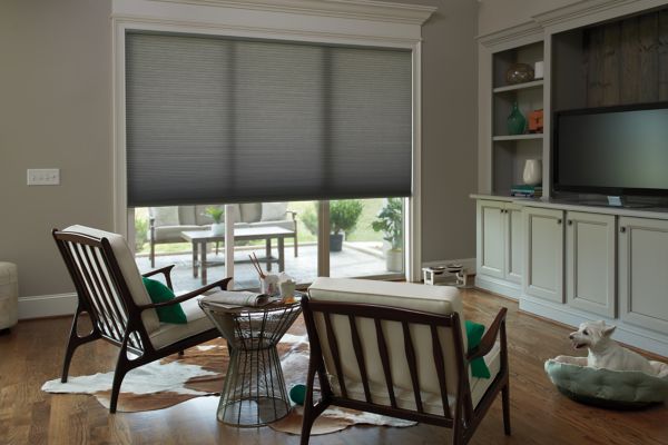 Levolor cordless or honeycomb shades are a good option if you have pets or small children who might get caught in the cords.